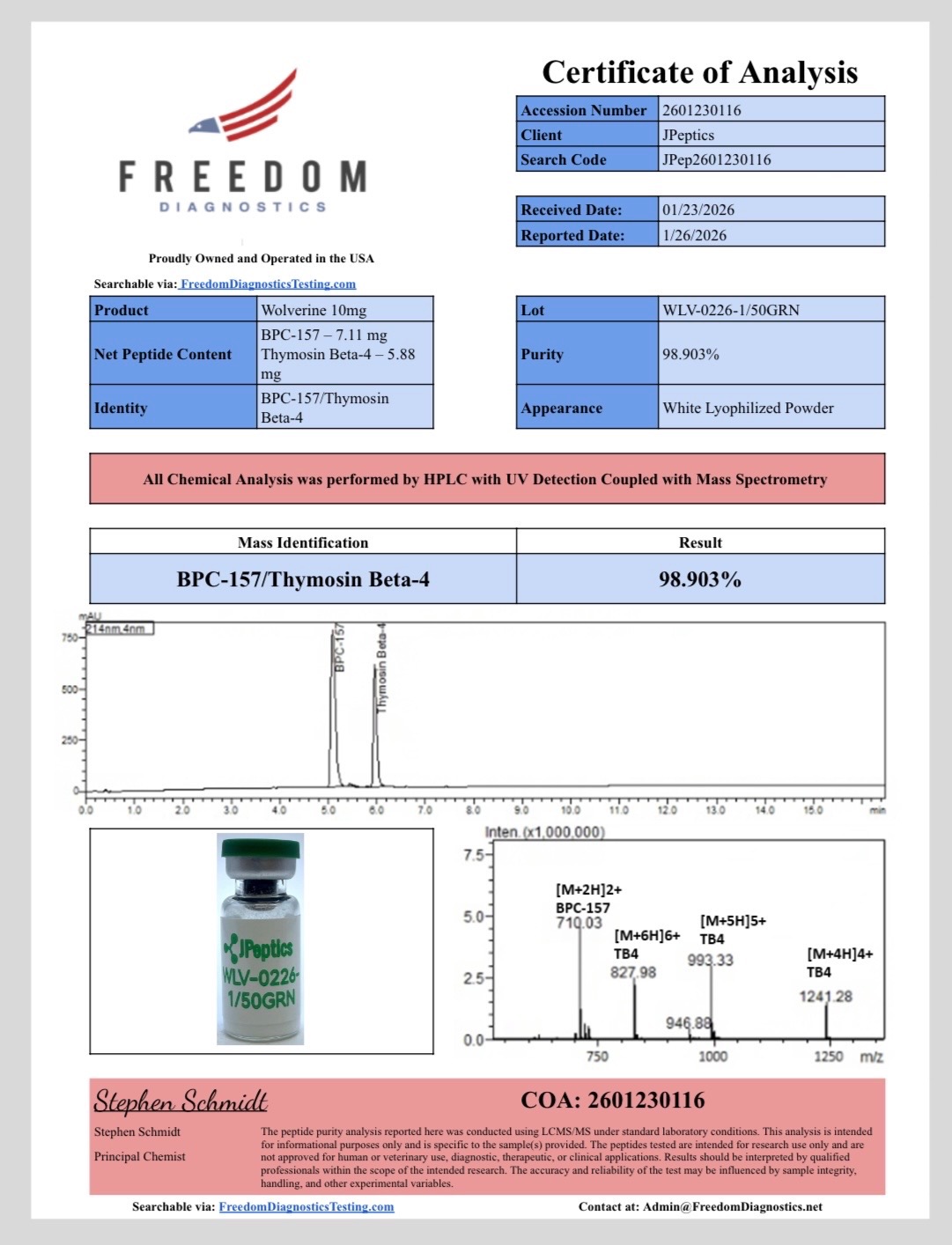 Each batch of Wolverine Stack comes with a complete Certificate of Analysis showing: